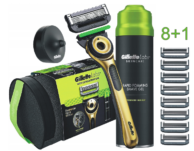 ✔ Strojek Gillette Labs s peelingovým páskem s jednou žiletkou + 8kusů náhradních žiletek