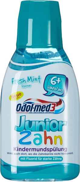Odol-med3 Junior ústní voda nabízí jemnou, dětem příjemnou mátovou chuť, obsahuje 225 ppm fluoridu a je zcela bez alkoholu. Díky fluoridu pomáhá posilovat zubní sklovinu a chrání zuby i tam, kam se kartáček nedostane.